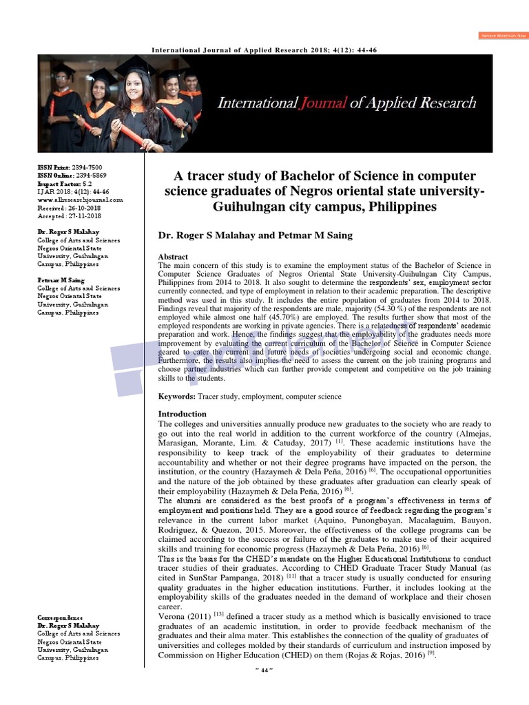 2 from The exact statistics from the 2018 tracer study shows that 341,311 graduated from 702 institutions of higher learning, and general skills training institutions the department added it was also crucial to note that the graduate employability rate had increased between 2017 and 2018 by 1.1 per cent. Any inquiries regarding graduate tracer study can be made to the 2018. What are graduate tracer studies? Tracer studies or graduate surveys constitute one form of empirical study aimed at providing information for evaluating the outcomes of teaching and learning of a specific institution of higher learning. The programs include arts and sciences, nursing, hotel and restaurant management, criminology, education, architecture, engineering. The lessons learned in the implementation of the six original tracer. 2020 thies graduate development progam. Though this kind of tracer study was conducted in bih in the year 2018, the laws on data protection have limited this year's tracer study to just one canton.