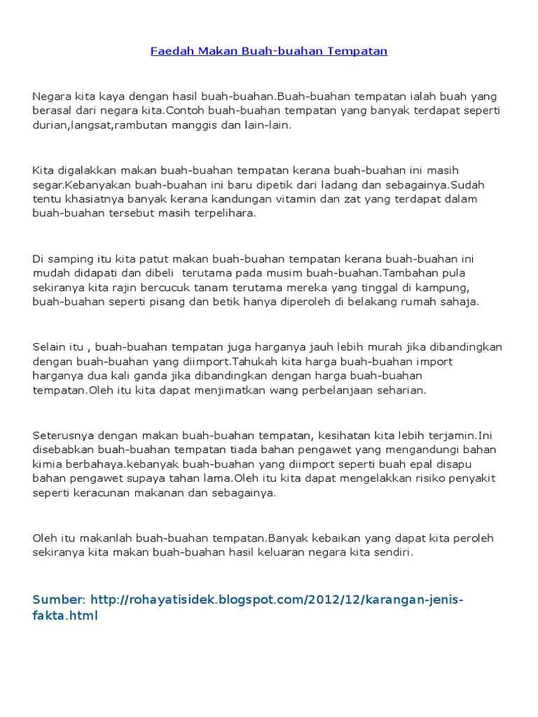 Kerangka Karangan Faedah Buah Buahan Tempatan from imgv2-2-f.scribdassets.com Kendati demikian, ada beberapa waktu makan makan buah saat atau sebelum makan besar dapat meningkatkan manfaat ini. Jadi, ikutlah sunnah, pasti ada kebaikannya. Gambar mewarna buah buahan tempatan bermanfaat buku mewarna buah. Kenali buah buahan tempatan relaks minda. So jom kita tengok 8 kebaikan makan buah manggis. Contextual translation of kebaikan makan buah buah tempatan into english. Download now contoh lukisan buah buahan tahun 4 pusat sumber st edmund limbang. Salah satunya adalah di matic jalan ampang kl, di kawasan letak kereta depan cocoa boutique.